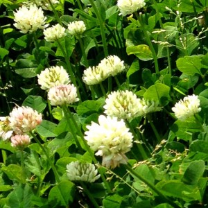 写真は、そのランニングコースに咲いている白詰草(シロツメクサ)
