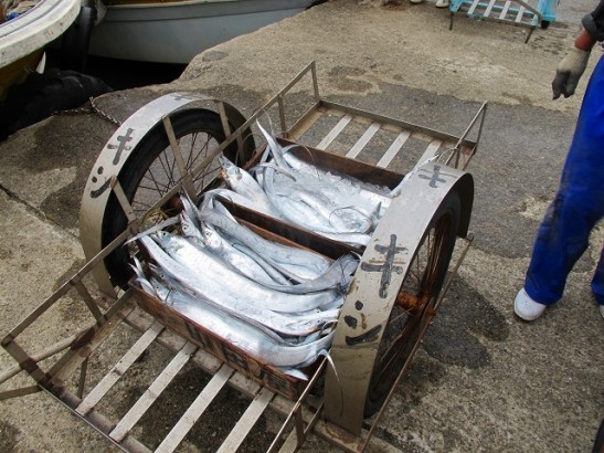 今日は大漁のようで、どのリヤカーも太刀魚が満載のようでした。