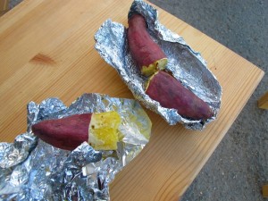 石の遠赤外線効果によって、中まで火が通った石焼き芋のできあがり! 😀