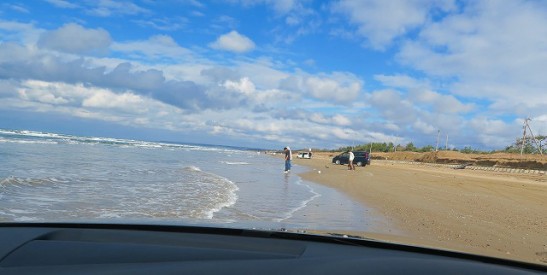 このドライブウェイの特徴は、一般の自動車やバスでも砂浜の波打ち際を走れること。