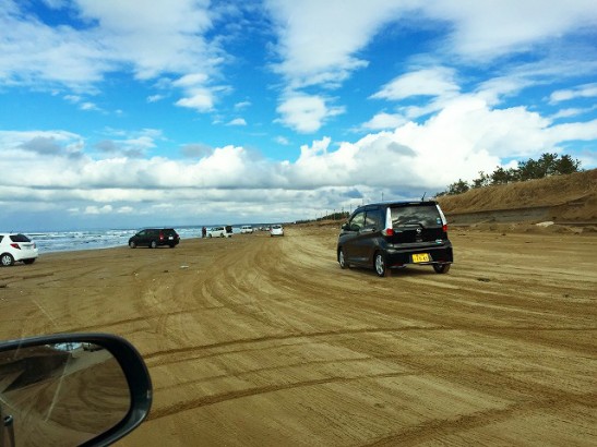 訪れてみると、波打ち際に駐車する車、砂浜を快走する車が…。